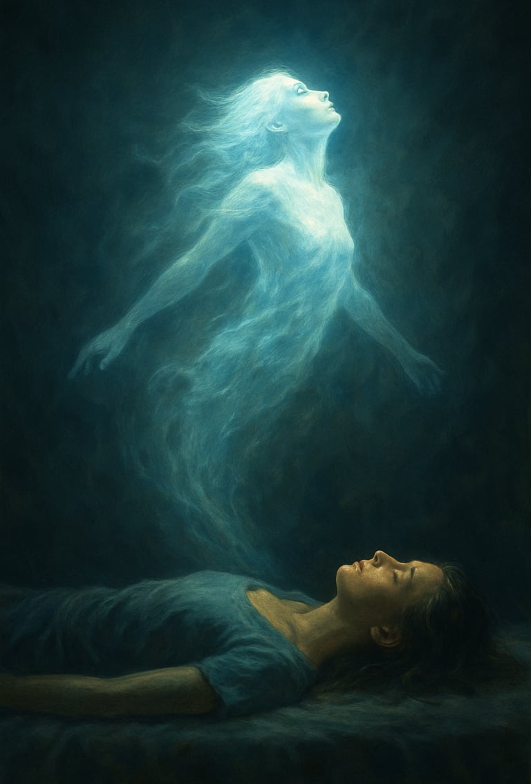 A feeling of leaving the body – Many describe floating above their physical form and observing the scene below with heightened awareness and clarity.